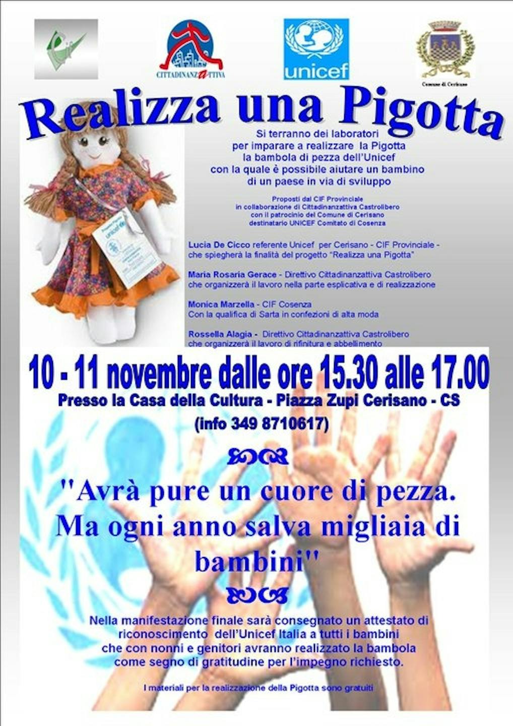 L'iniziativa è organizzata dal Comitato provinciale di Cosenza per l'UNICEF n collaborazione con il CIF provinciale, CittadinanzAttiva di Castrolibero (CS) e l'Amministrazione Comunale di Cerisano.