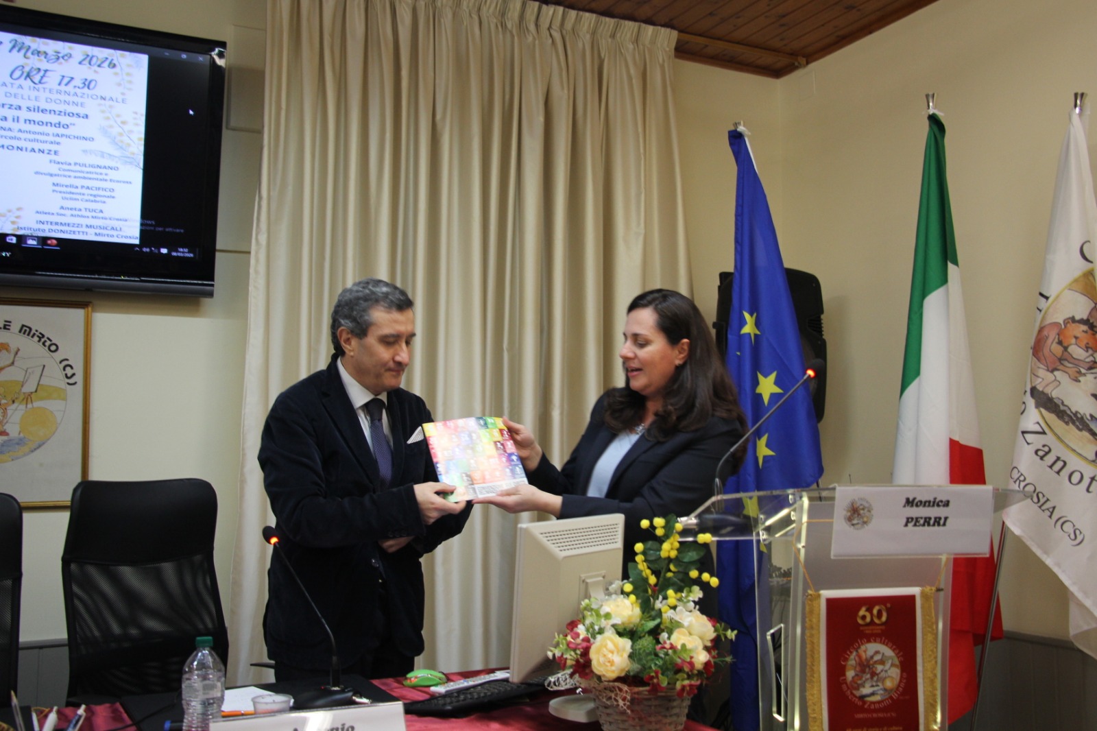 Il confronto ha attraversato temi come la partecipazione civile, l’educazione, l’ambiente, lo sport e il volontariato, restituendo l’immagine di un territorio in cui il contributo femminile si esprime in molteplici ambiti. Nel corso del suo intervento, la presidente Perri ha sottolineato il valore della solidarietà e dell’impegno in favore dei più vulnerabili, esponendosi i progetti in cui è impegnato il Fondo per le Nazioni Unite per l’Infanzia. Ha fatto, quindi, dono di una copia della Convenzione Onu sui Diritti dei Bambini e degli Adolescenti al presidente del Circolo Culturale.