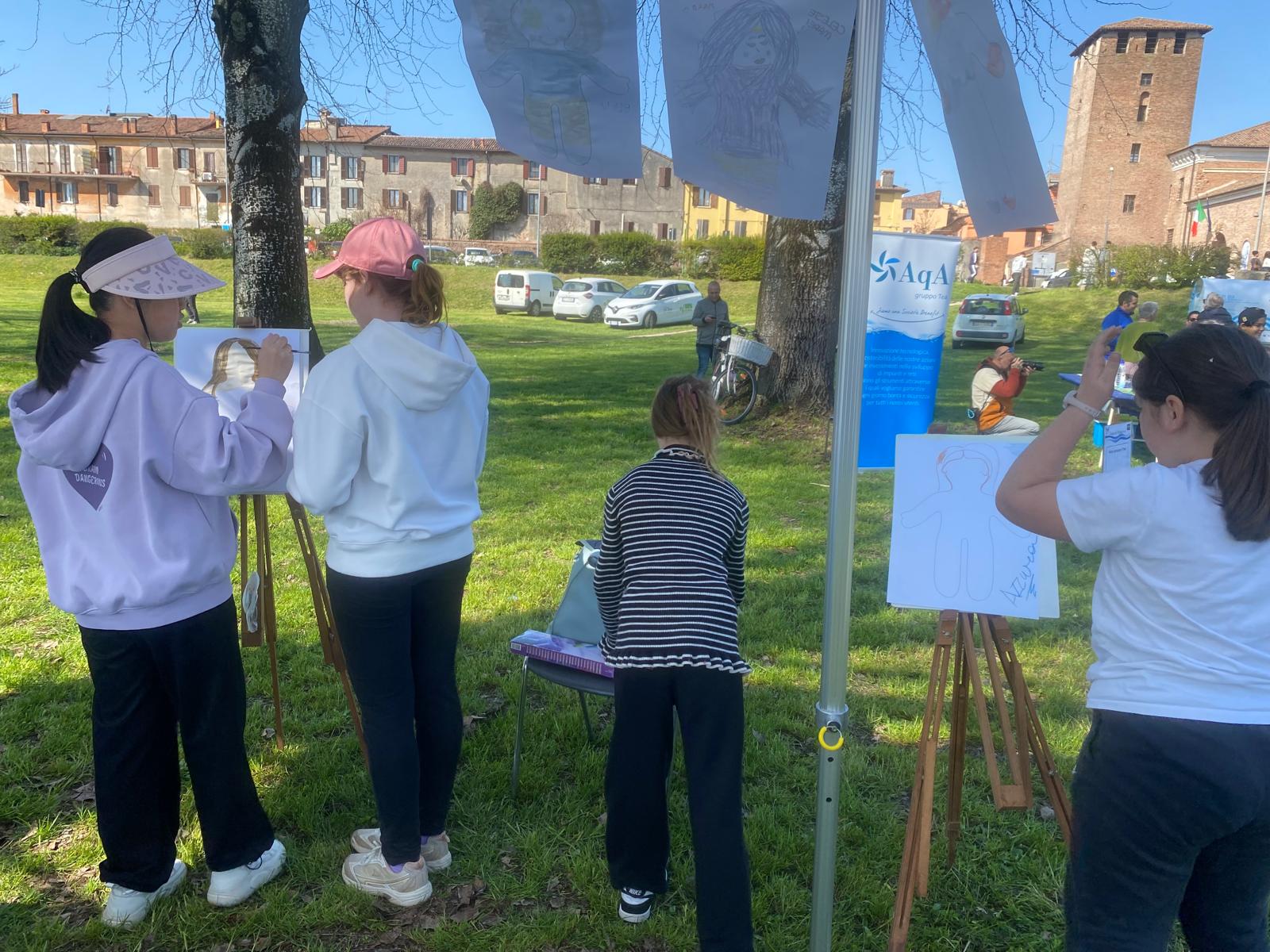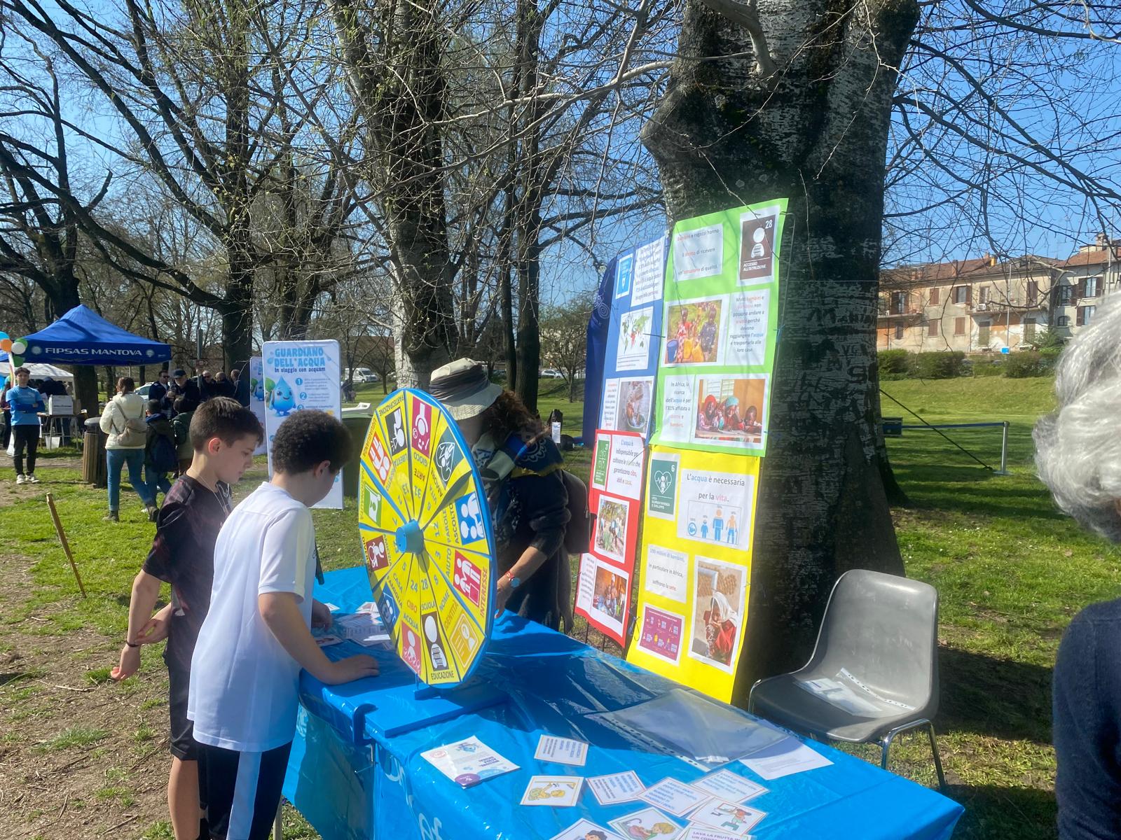 Il Comitato UNICEF ha partecipato alla manifestazione Fiumi di Primavera – Giornata mondiale dell’acqua a Mantova con un progetto svolto in collaborazione con l’IC di Ceresara. Gli e le studenti delle classi prime dei tre plessi, utilizzando materiali forniti dal Comitato, hanno lavorato al tema della Giornata – Water and gender – focalizzando l’attenzione sui diritti alla salute (Art. 24 della CRC), all’istruzione (Artt. 28 e 29 della CRC) e all’alimentazione (Artt. 6, 24 e 27 della CRC). La mattina del 20 marzo, sul Lungolago Gonzaga, i ragazzi e le ragazze hanno animato tre postazioni tematiche utilizzando grafici, creazioni artistiche e performance espressive; in aggiunta, hanno sensibilizzato i visitatori proponendo attività ludiche. Presso una quarta postazione, collocata nei pressi di quelle dell’IC di Ceresara e gestita direttamente da volontarie del Comitato, sono stati messi a disposizione materiali informativi relativi ai Programmi “Acqua e Igiene” e “Clima e Ambiente”, ed altri riguardanti i diritti delle persone di minore età legati ai temi della salute e della sostenibilità ambientale. Inoltre attraverso le “ruote dei diritti” – dispositivi ludici appositamenete realizzati – i visitatori hanno potuto riflettere sulle connessioni esistenti tra il rispetto di alcuni diritti e l’accesso all’acqua pulita. Infine, i visitatori hanno avuto l’opportunità di progettare pigotte ispirate al tema dell’acqua, prendendo a modello la sagoma originale della bambola dell’UNICEF riprodotta su grandi fogli.
