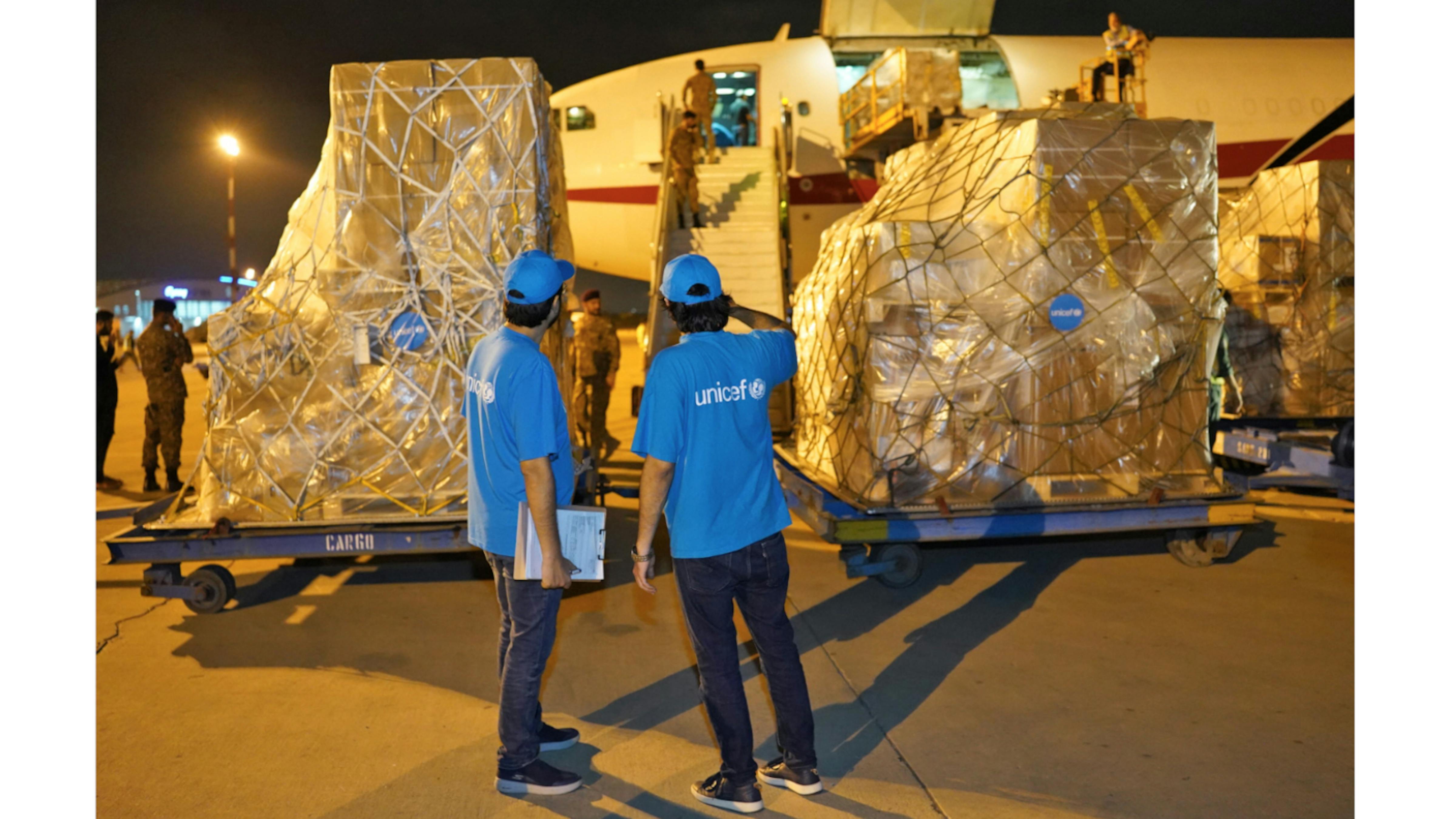 La spedizione è arrivata a Karachi partendo dalla Supply Division dell'UNICEF a Copenaghen. La spedizione comprende medicinali, forniture mediche, compresse per la purificazione dell'acqua, kit per il parto sicuro e integratori alimentari terapeutici.
