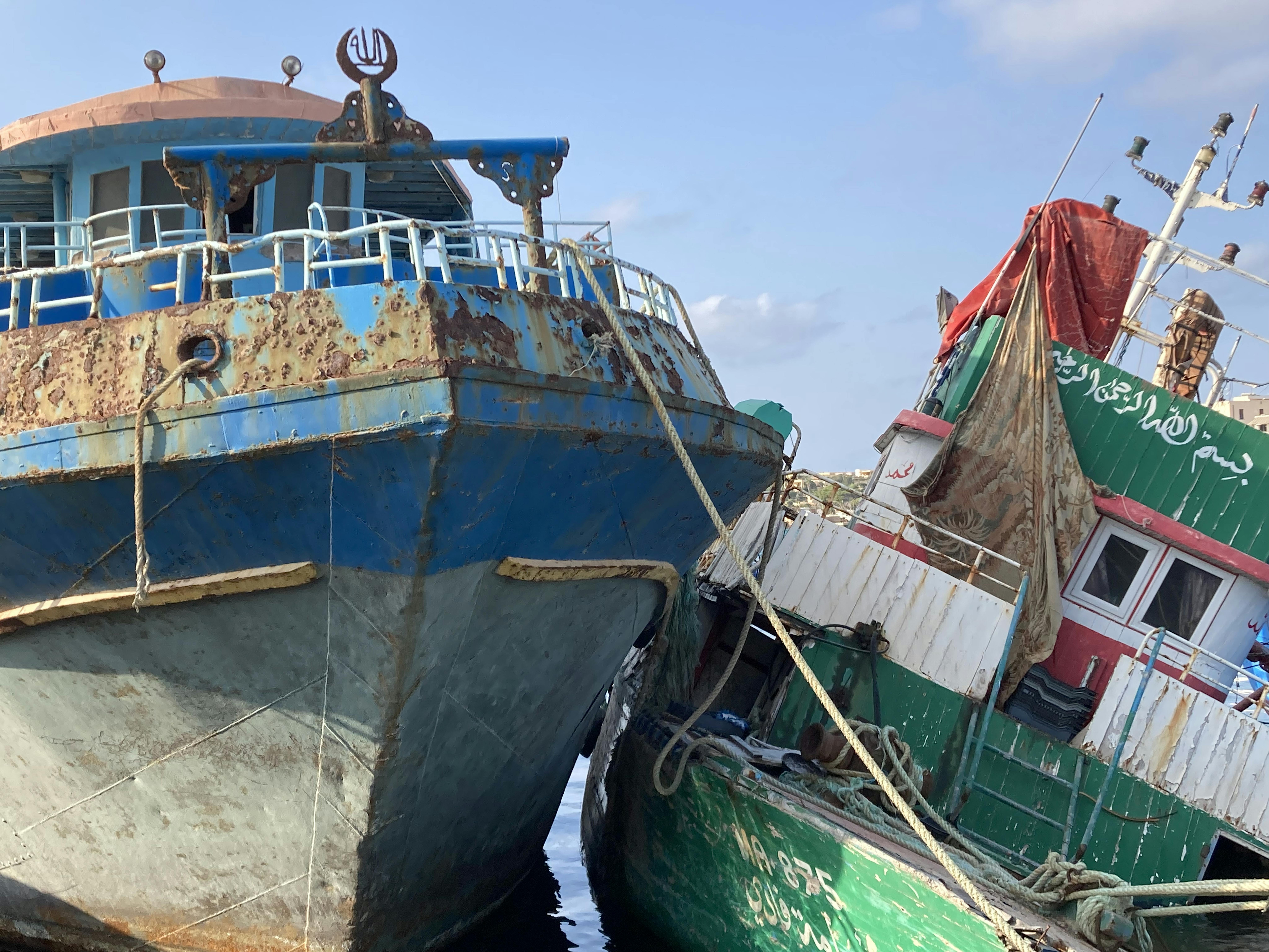 Barconi utilizzati nelle traversate, arenati al porto di Lampedusa